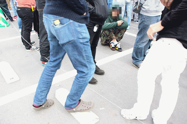 | シマの両端では常に立ち見のファンが待機し空台を狙う | |