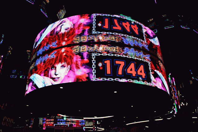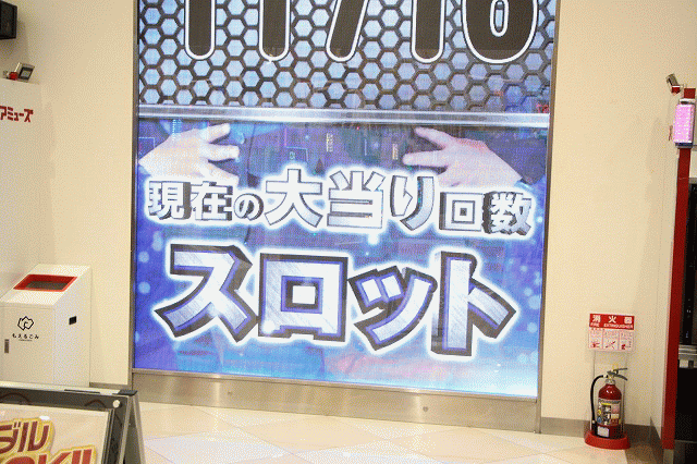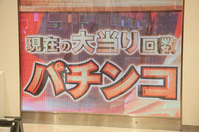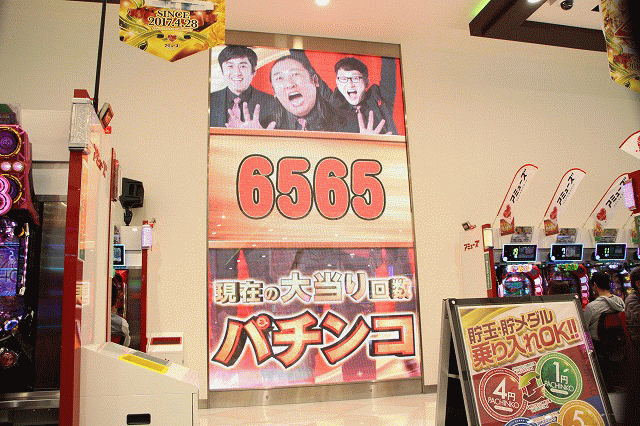 | 中央通路最深部には、パチンコ・パチスロの総大当り回数を表示するモニターが! 自信があるからこそできるサービスだ |