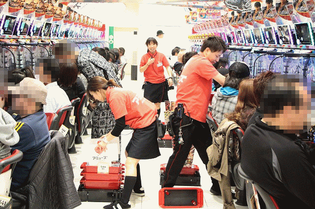 スピーディーかつ生き生きとファンの遊技をサポートするスタッフ陣。