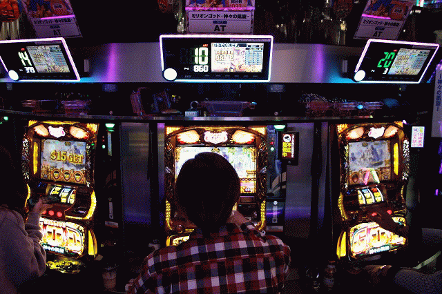 20円パチスロ319台、5円パチスロ74台のリールが、一斉に回りだす!!