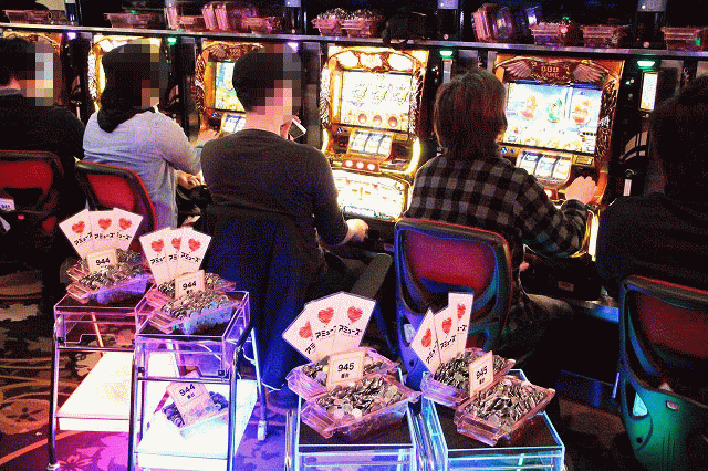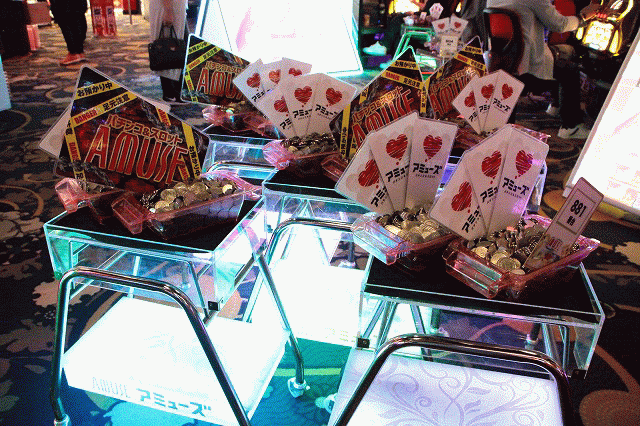 所狭しと並べられるドル箱…、楽しみつつメダルも大量にGETできるパチスロファンが羨ましい!!