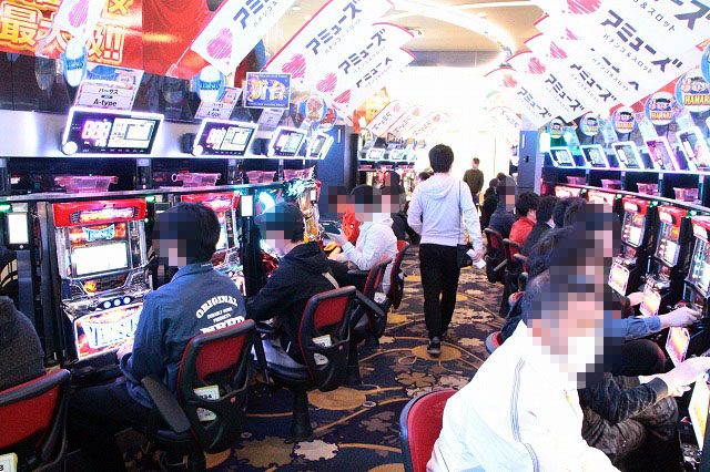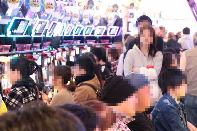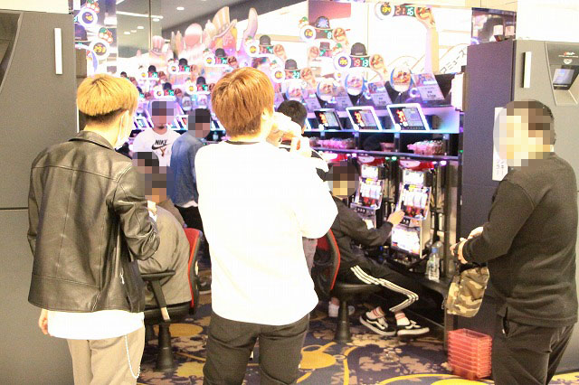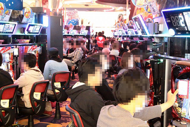入場口に近いパチスロフロアが、あっという間に「満員御礼」状態に。