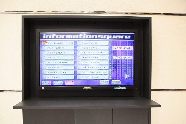 カウンター横に、全機種のデータを確認できる大型モニターを設置。