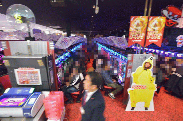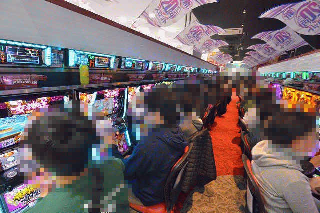 店内はパチンコ玉やパチスロのメダル同士の弾ける景気の良い音、大当りのBGM、一気に熱量が右肩上がり!