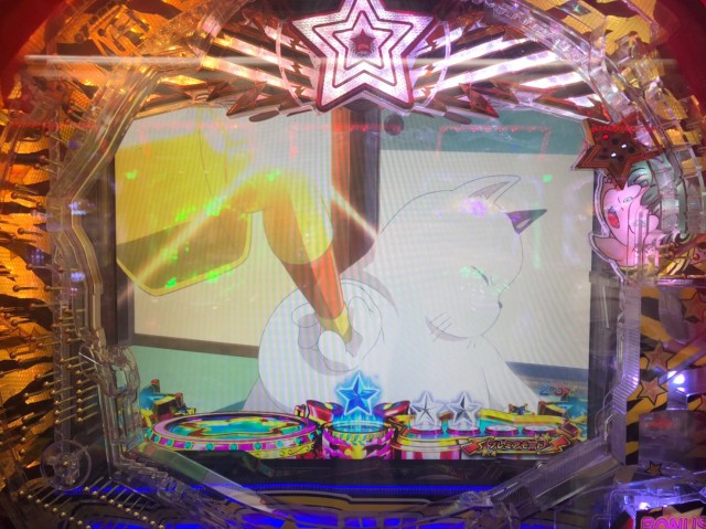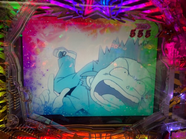 朝イチの勢いに乗りたかったこちらも370回転目に、本機の5大電撃演出「金髪ラムちゃんカットイン演出」から大当りもST突入ならずで単発終了となります。