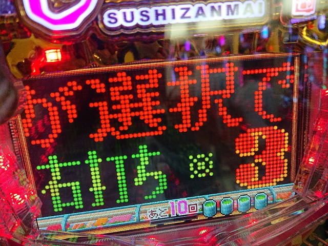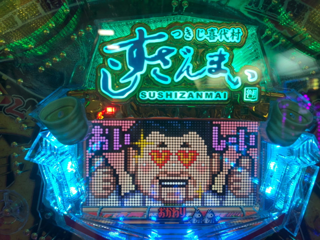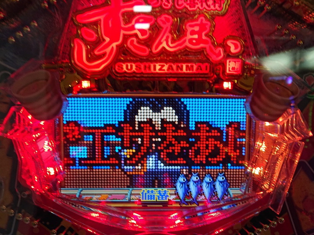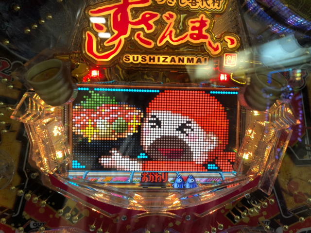 渾身のすしざんまいポーズも、どこかぎこちないけど大丈夫かな? ちゃんと大当り引いてね?