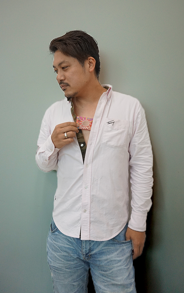 「あ、ヤドゥさん。いま胸からジャグラープレミアムカード −マイジャグラーIV−を取り出す練習をしてるんですよ」