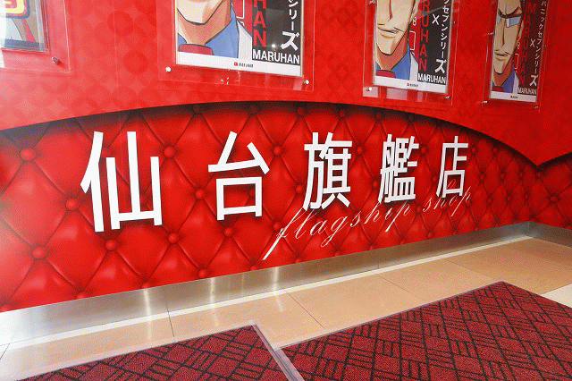堂々「仙台旗艦店」と謳う風除室に、カウンター前の絨毯も新調済み。