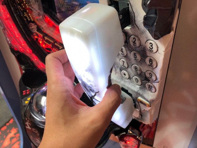 まず、目に付くのは筐体右に設置された、新デバイス「恐怖の電話ギミック」。