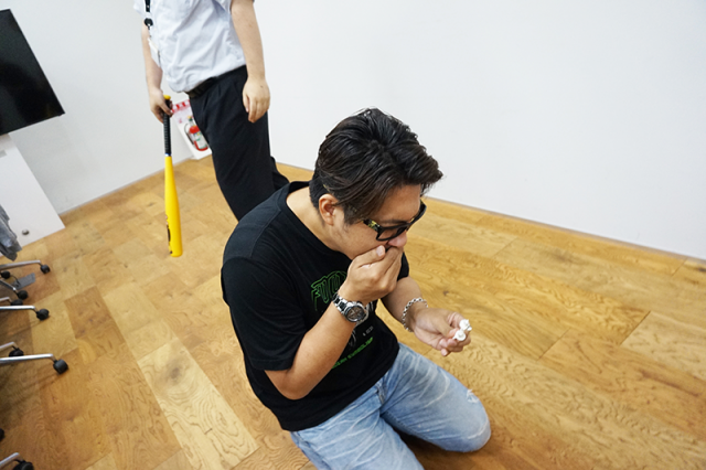 まずは、ヤドゥ賞のお仕置き「鼻毛を抜きながらケツバット」の執行です。