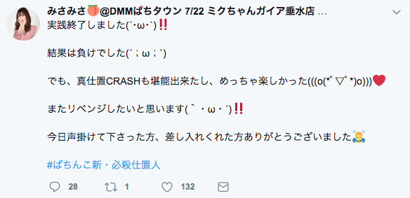 後輩みさみさ(@misamisa366)を引き連れての実戦で、いいところを見せたい思いが好結果につながったようで。
