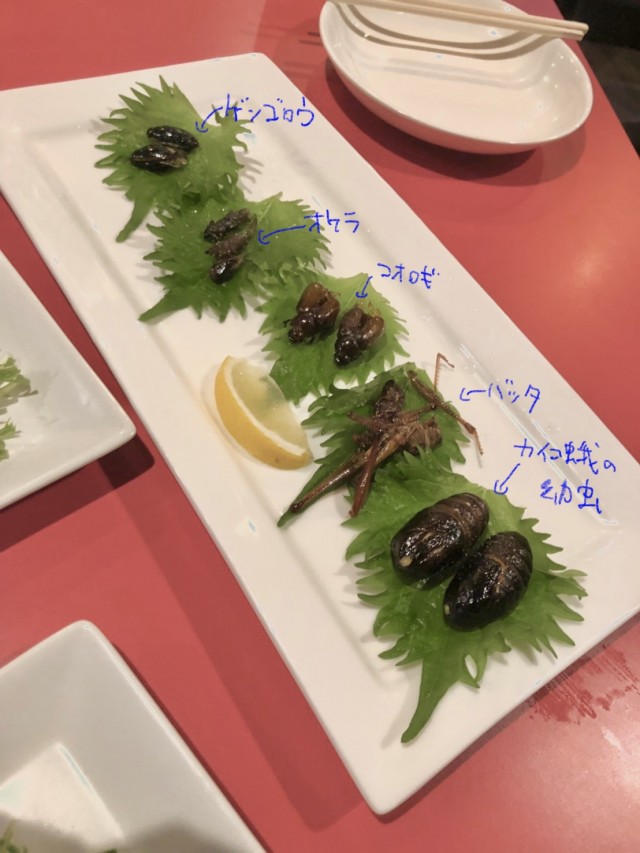 まずは、「昆虫の盛り合わせ(5種)」からいきましょう。