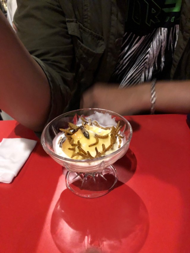 そこに混入したミルワームがサクサク食感をプラスしてくれて、味と食感の両方を楽しめる完成度の高い一品。