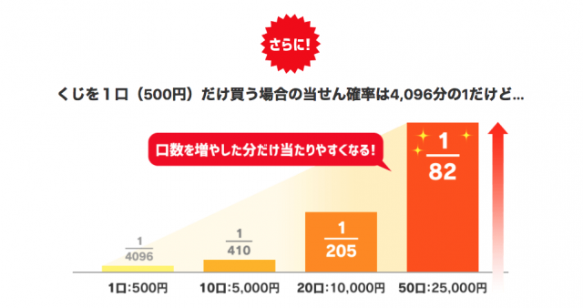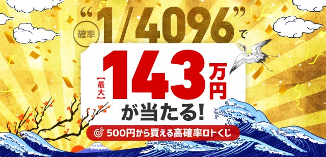 いつでもどこでも1口500円から楽しめて、誰か1人が最大143万円をゲットできる高確率くじ。