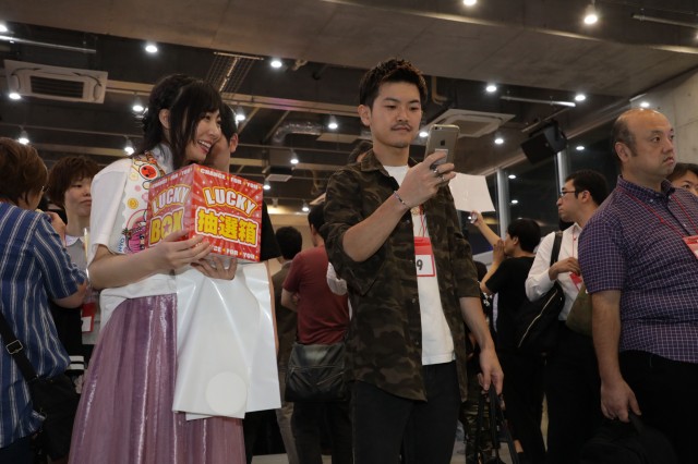 実機にも搭載されているアイマリン楽曲でクリアを目指し、成功すれば賞品がもらえるということで、みなさん真剣にチャレンジしていましたよ。