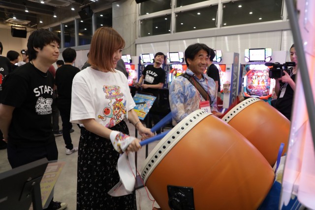 会場に入ってすぐの位置には、アーケードゲーム機の「太鼓の達人」が設置。