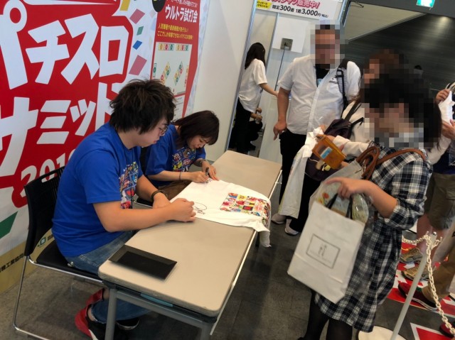 ジャンバリ.TVのジロウさんと共に、この場でしか手に入らないオリジナルTシャツへサイン。