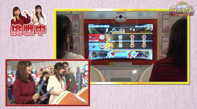 終盤で、「太鼓の達人」のアーケード機を使った勝負も始まります。