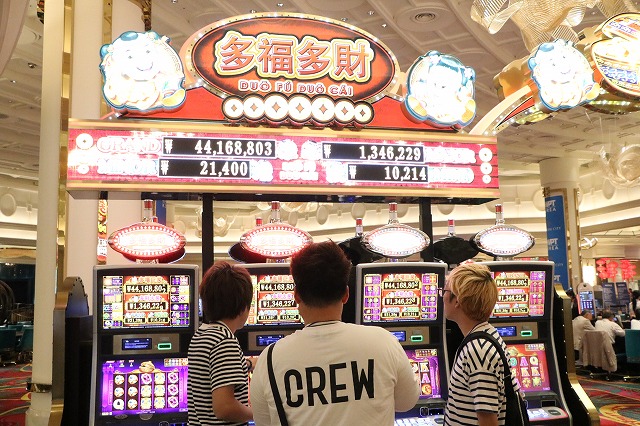 今回の舞台となるスロットエリアはこんな様子。もちろんカジノ内にはブラックジャックやバカラのテーブルゲームもありますよ。