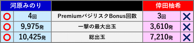 上回った項目が多いライターが勝者となり、最終的に対決を制した日が多いチームの勝ちとなります。