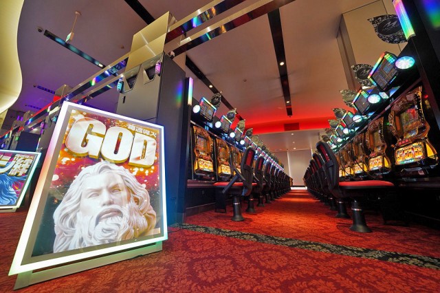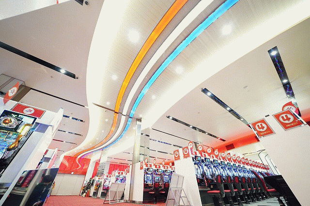 フロア全体を包む清潔感と共に、華やかな中央通路の両サイドには至宝の名機たちがズラリ!