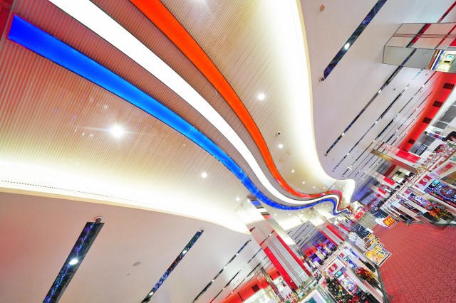 フロア周囲に架かる、色鮮やかなアルカンシエル(フランス語で虹)が印象的!