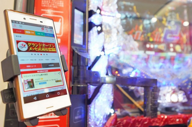 | パーソナルスペースはバッチリ! 各台にはパチンコを嗜みながらも、スマホも簡単操作できるハイテクアーム付き。 |
