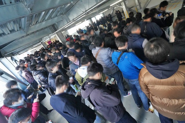 | 行列は混乱を避けるため、3Fと4Fに分けた2階仕様! 整列の手際もスムーズゥッ! |