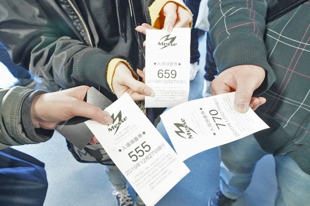 | 楽しそうなファンの皆さん! 1番を引いた人はもちろん嬉しそう。でも、ちょっと微妙な番号だった…なんて人も笑いながら仲間同士で談笑中! やる気満々です! |