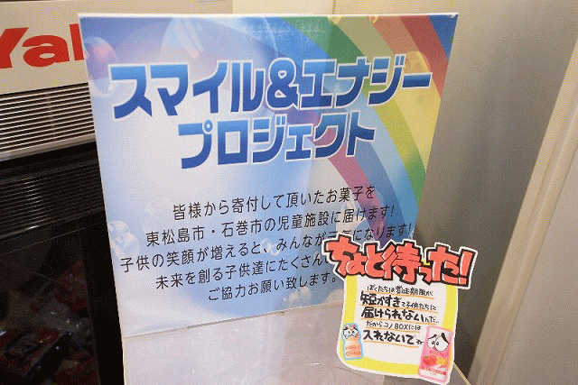 余りメダルで交換した賞品を寄付として集め、児童施設に届ける「スマイル&エナジープロジェクト」を実施。