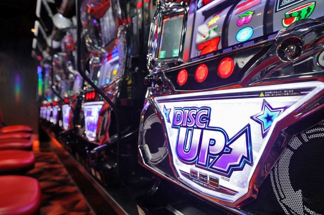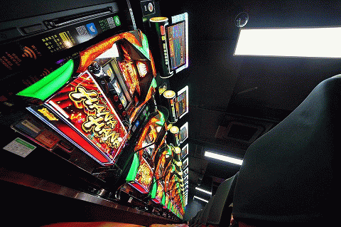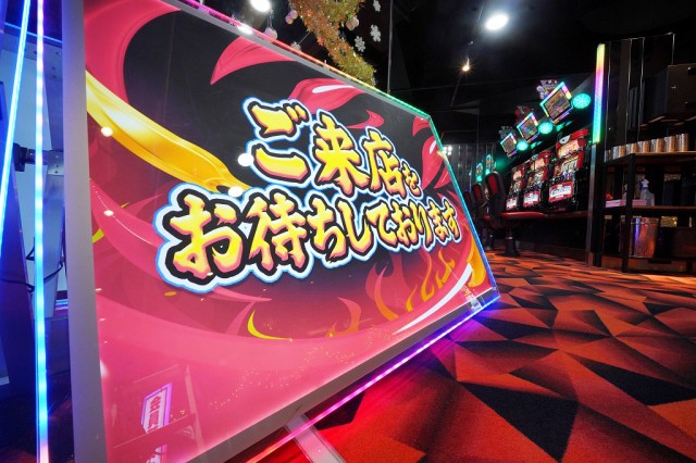 ワイドな看板が銘打つように、ここはパチスロ専門店。