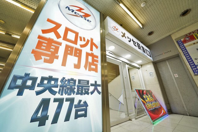 大きな特長は、東京都内に展開するメッセグループ内で初となる「スロ専」という点だ。地下の広大な1フロアを使い、贅沢にパチスロ島を配している!