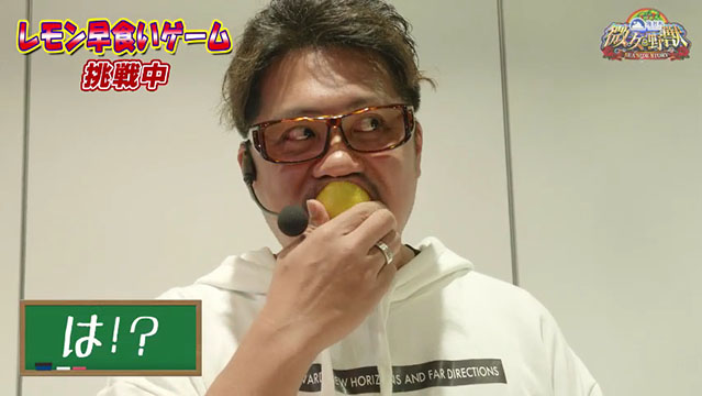 ヤドゥとクロちゃんのミニゲーム対決。レモンの早食いに挑みます。