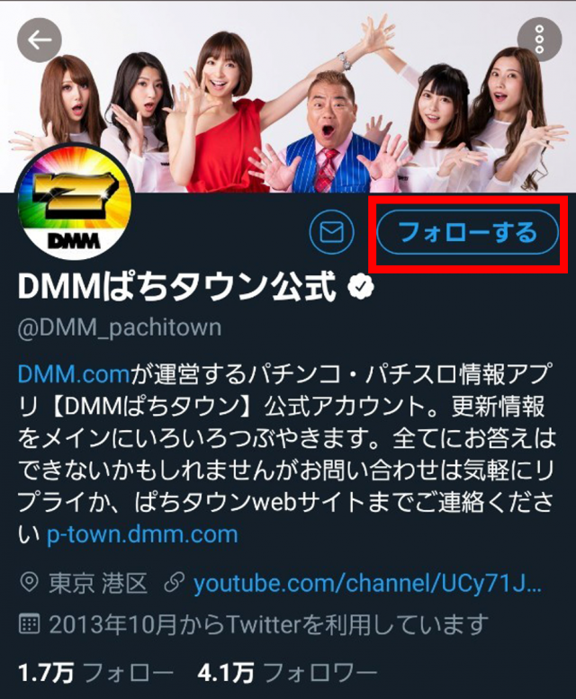 1.ぱちタウン公式アカウント(@DMM_pachitown)をフォロー!