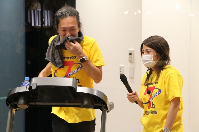 そんなこんなで生配信終了まで残り時間も僅かに。無謀とも思えたルームランナーでのフルマラソンは、なんと番組終了10分前に完走!