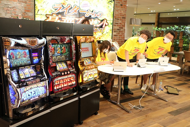 番組終盤には目玉プレゼントのひとつ、『GOD』シリーズ3機種が登場。各1名様ではなく、3機種全台を1名様に送りつけるというクレイジーなところがぱちタウンって感じですね。MC陣も当選者宅の床を心配していましたが、電話で伺ったところ問題ないとのこと。