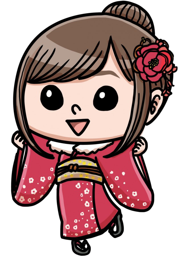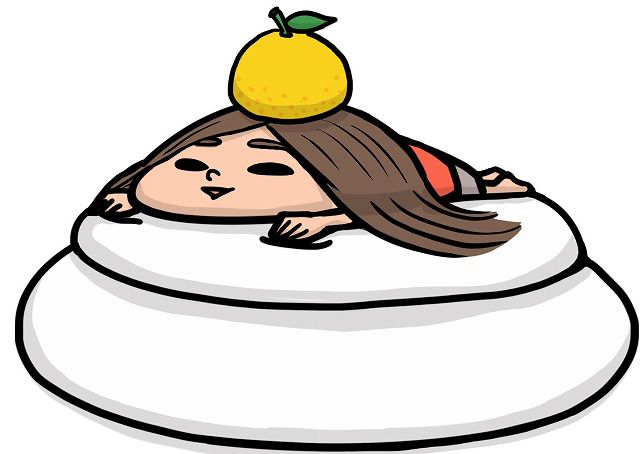もちの上でぺったんこになっている倖田柚希のイラストです
