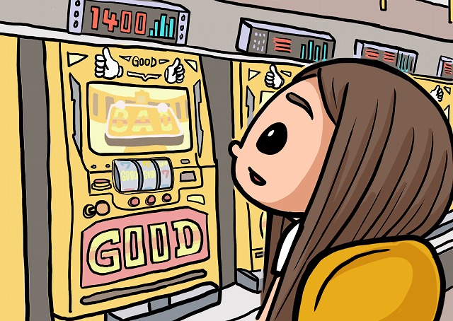 持ち玉がなくなって落ち込む倖田柚希のイラストです