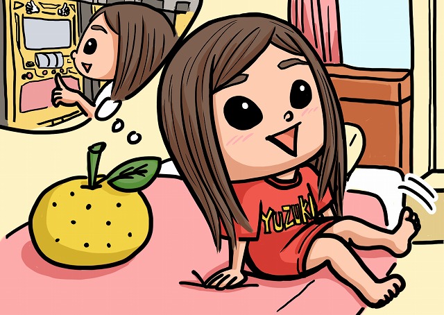 明日打ちに行くことを考えてワクワクしている倖田柚希のイラストです