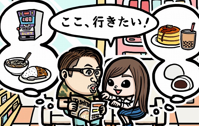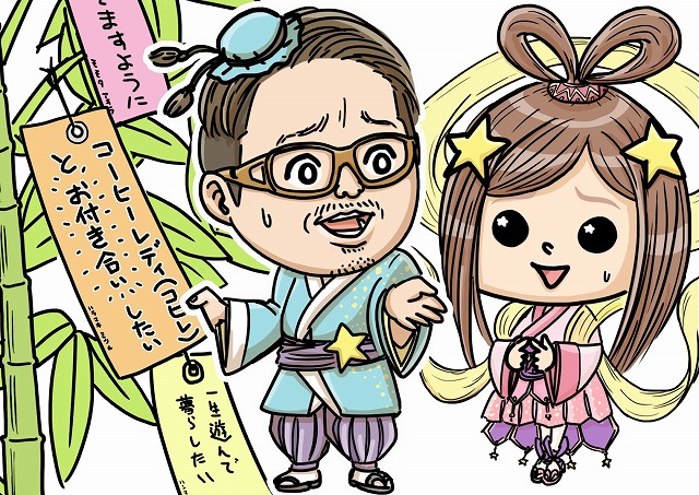 TaSHITEをチェックする倖田柚希とヤドゥのイラストです