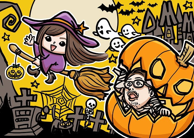 ハロウィンのイラスト(倖田柚希&ヤドゥ)です