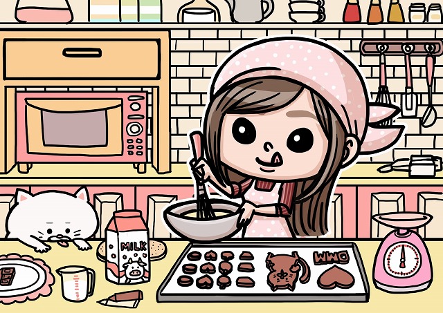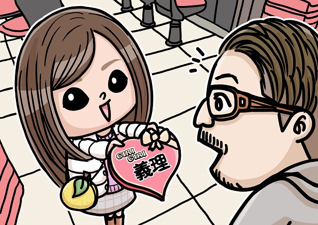 ヤドゥに義理チョコを渡す倖田柚希のイラストです