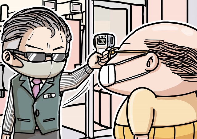検温する店員のイラストです