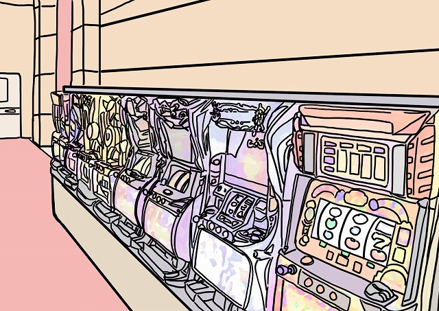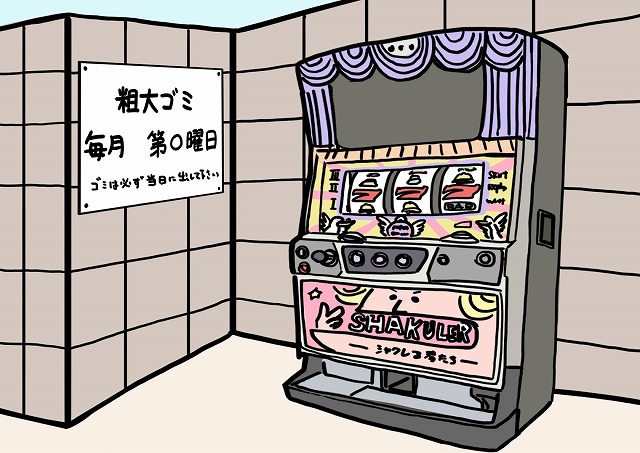 ゴミ捨て場に放置されたパチスロ台のイラストです