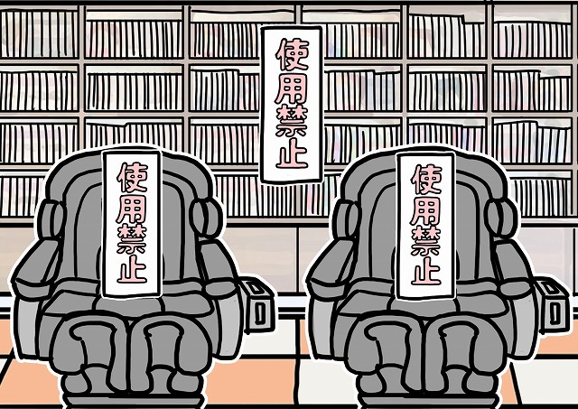 マッサージチェアが使用禁止になっている休憩スペースのイラストです