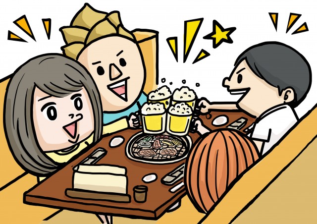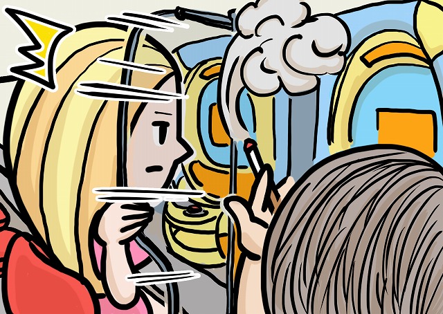 分煙ボードでタバコの煙を防ぐ人のイラストです
