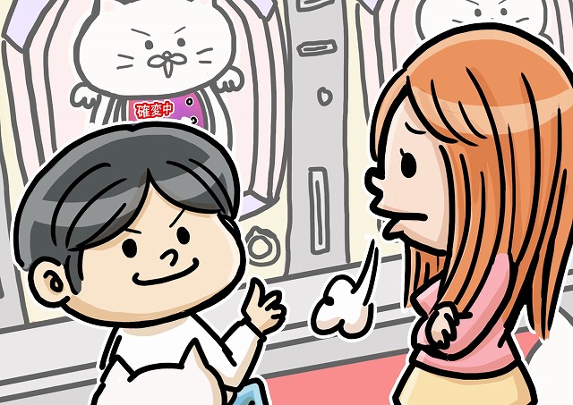 ドヤ顔の彼氏と退屈そうな彼女のイラストです
