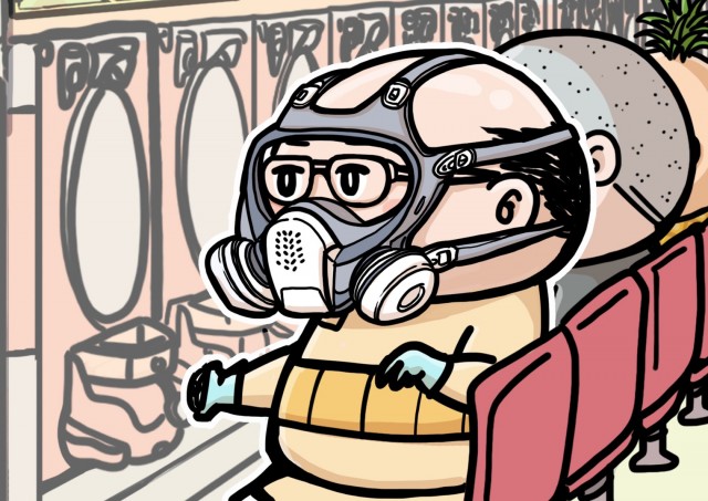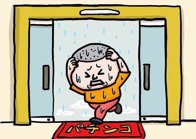 ウイルス完全ガードでパチンコを打つ人のイラストです