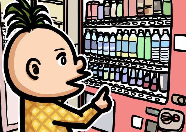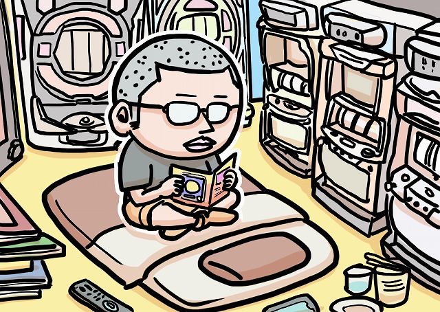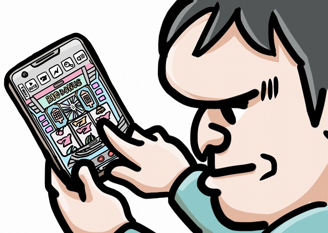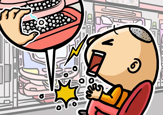 何台か向こうで打ってるかわいい女の子が気になる人のイラストです