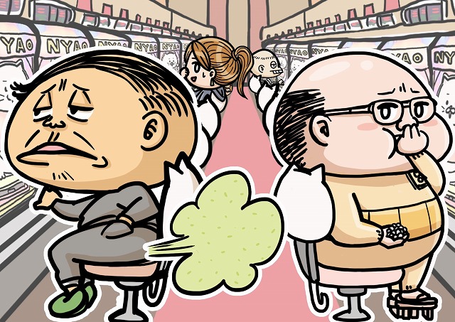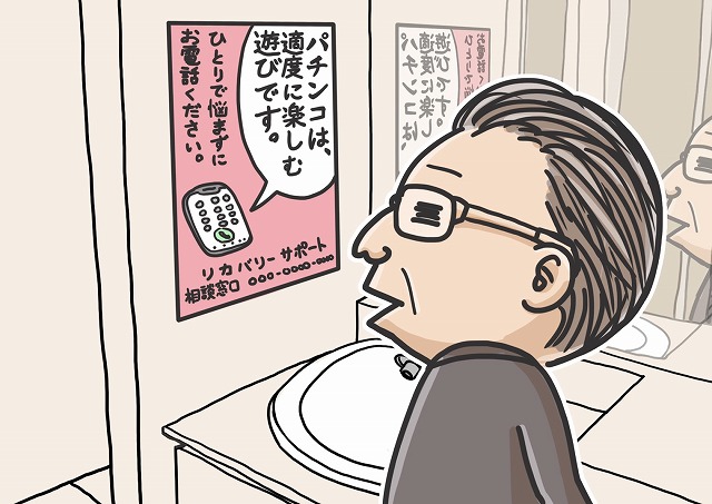 - 店員がパチンコ台を調整するのを不安そうに眺める人